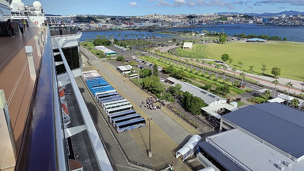 殆どの乗船客が船外ツアー(桜島、霧島、指宿、知覧)または市内循環バスで出かけます。