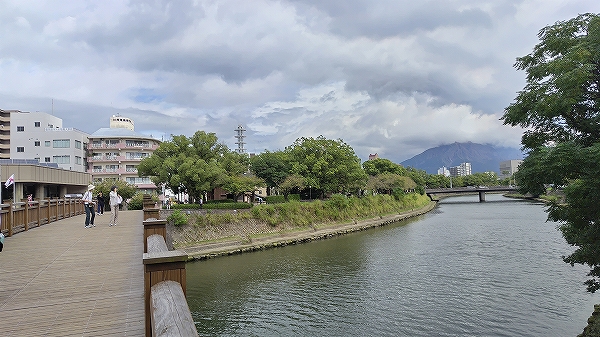 甲突川、奥に見える鉄塔はdcm鹿児島