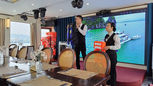乗船後、救命胴衣、コース説明がありますが英語なので内容は不明です。